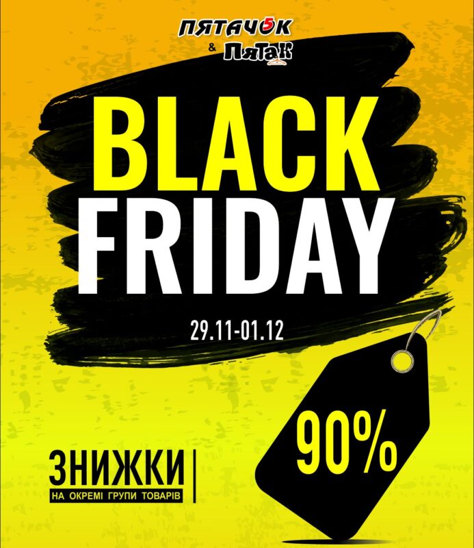 Чорна П’ятниця та величезні знижки 90% чекають на вас з 29.11 по 01.12.2024р у нашій мережі. Зижки діють на виділені групи товарів. Приходьте і обирайте речі за приємною ціною.