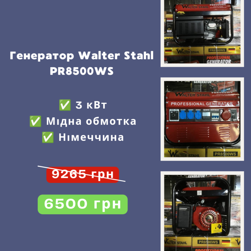 У продажу за акційною ціною є генератори Потужність 6кВт. Ціна 37 000грн Для замовлення пишіть у наші соцмережі.