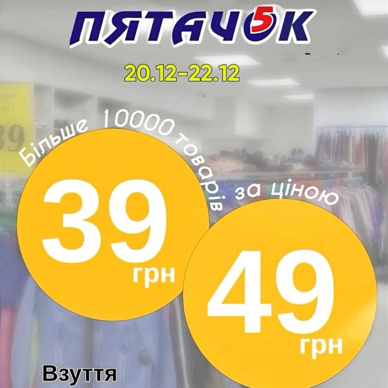 Розпродаж товарів по 39 та 49 грн. Светри, трикотаж, шуби, дублянки, брюки, взуття, піджаки, кардигани. Товари представлені в усіх магазинах мережі.